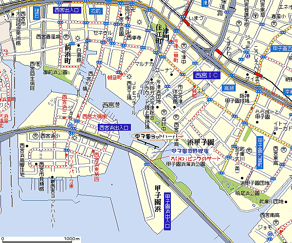 ③スーパー銭湯:熊野の湯(天然温泉)(Kumano) ④銭湯:今津温泉(ヒマラヤ岩塩)(Imazu) ⑤銭湯:浜田温泉(天然温泉)(Hamada) Shop ⑥スーパーマルナカ(Marunaka) スーパーMandai Ropia(コーナン2F) 業務用スーパー UNIQLO(コーナン1F) ⑧Family Mart ⑨ローソン Fuel ⑩新西宮Yacht Harbor給油所 ⑪今津PawerBoatCenter給油所 ⑫コーナンGas Stand(セルフ) ⑬甲子園南小学校前(koushien minami syougakkou ) (徒歩/walk12min・甲子園浜公園を通過する) ⑭徒歩入口(Entrance by walk and bycecle 甲子園浜野球場入口(koushienhama baseball field |
